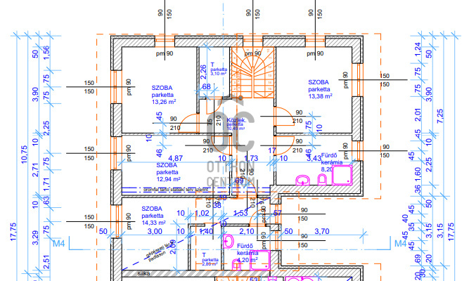 Padlófűtésről és mennyezethűtésről hőszivattyú gondoskodik, mely szintenként szabályozható.
