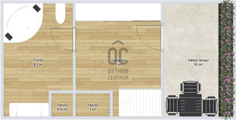 A három szint hasznos alapterülete 86 m2.