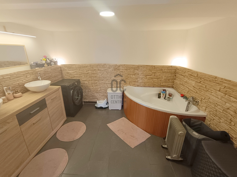 a fűtése vízteres fa tüzelésű kandallóval, valamint elektromos fűtéssel megoldott.