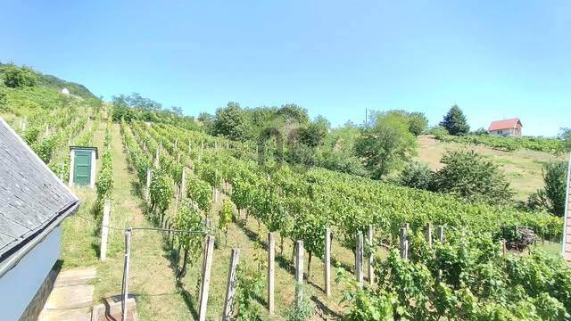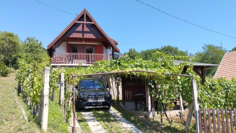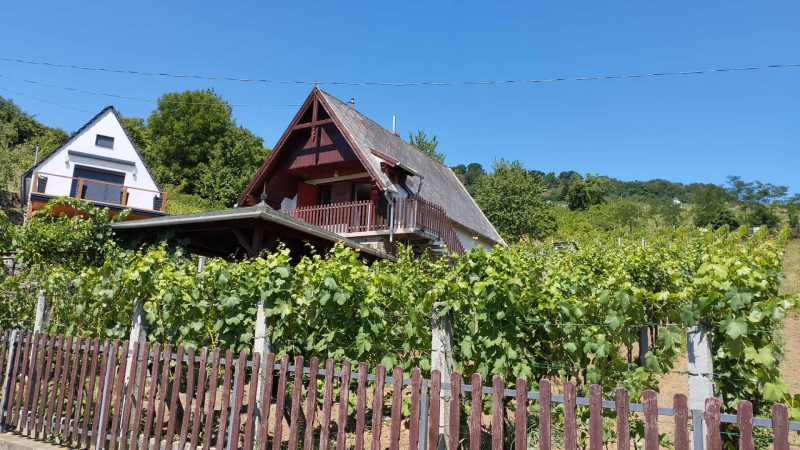 Somló hegyen, az arany oldalon tégla építésű, jó elrendezésű hétvégi ház, szőlőültetvénnyel eladó.