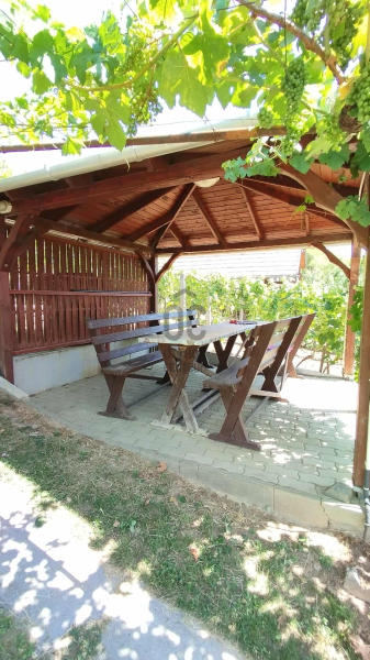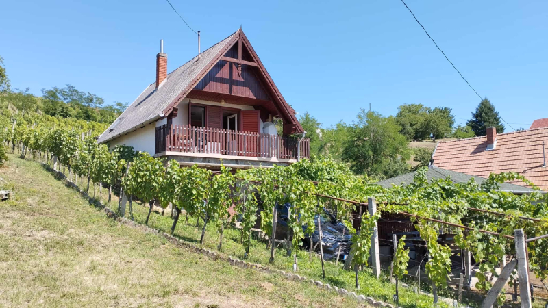 Somló hegyen, az arany oldalon tégla építésű, jó elrendezésű hétvégi ház, szőlőültetvénnyel eladó.