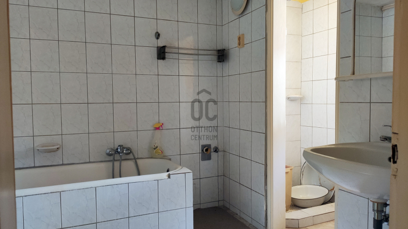 A szomszéddal határos rész nettó 72 négyzetméteres, két szoba-konyha kamrával és a fürdőszobában kád és tusoló is ki lett alakítva.