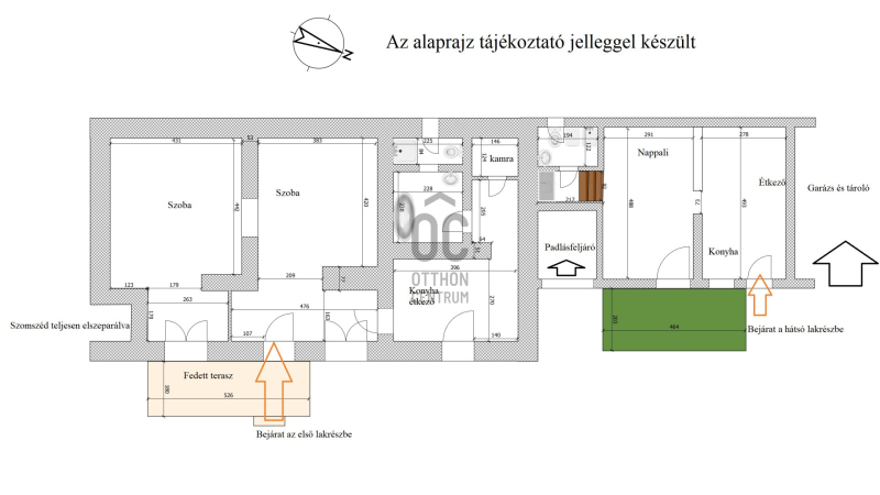 A szomszéddal határos rész nettó 72 négyzetméteres, két szoba-konyha kamrával és a fürdőszobában kád és tusoló is ki lett alakítva.