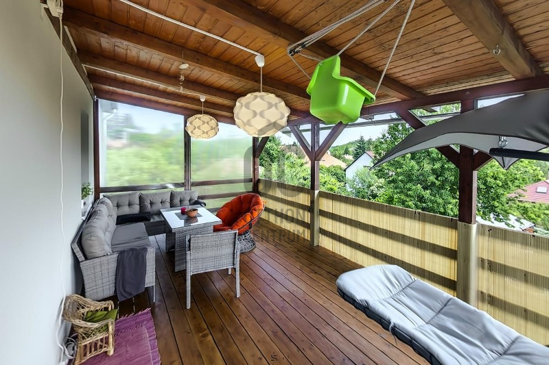 - Az étkezőből közvetlen kijárat nyílik a tágas teraszra, ahonnan csodás, zöld körpanoráma tárul elénk
