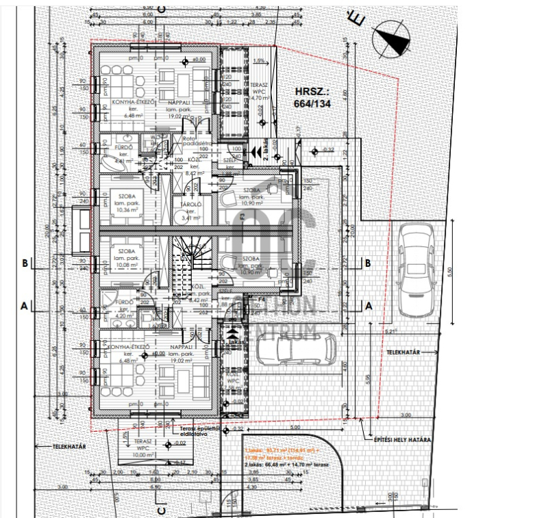 67,67 m² hasznos lakótér + 17,58 m² fedett terasz