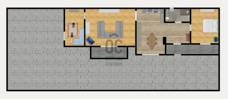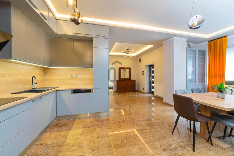 A lakás klimatizált (hűtő-fűtő klímák), az ingatlan riasztó- és kamera rendszerrel felszerelt, a konyha gépesített.