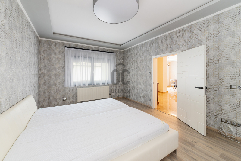 A külső nyílászárók műanyag tok- és szárnyszerkezetű ablakok, 3 rtg. üvegezéssel, redőnnyel felszerelve, a bejárati ajtó 3 ponton záródó biztonsági ajtó, a beltéri ajtók prémium minőségű ajtók.
