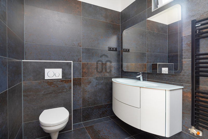 A padló- és falburkolatok magas igényszintet tükröznek, szerkezeti és esztétikai hibáktól mentesek. Álmennyezet, rejtett világítással, kialakított.