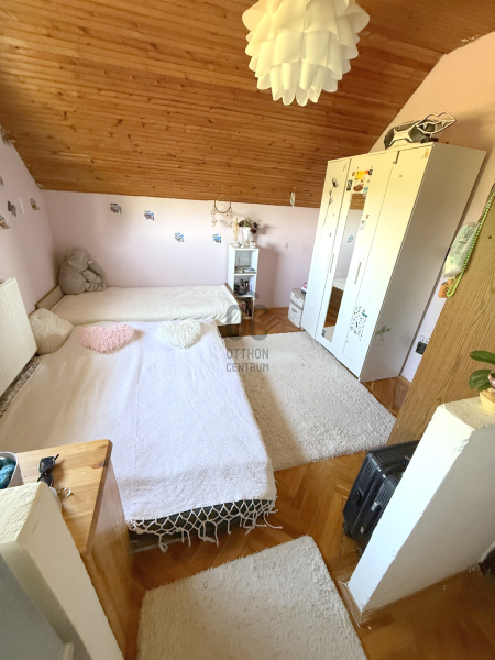 Nagytarcsán csendes mellékutcában kínálunk megvásárlása egy 796 nm-es összközműves telken álló alápincézett+ két lakószintes önálló családi házat. A földszinten a fedett teraszról nyílik a bejárat, ahol a tágas, csupa napfény nappali (kelet-délkeleti tájolású), kényelmes méretű étkező, konyha, kamra, egy nagy hálószoba, fürdőszoba és egy külön mellékhelyiség került kialakításra. Modern, mai igényeknek megfelelő belső elosztás, tágas, rendkívül világos helyiségek. Az emeletre kényelmes lépcső vezet, ahol két nagy hálószoba (egyik teraszos), és egy nagy kádas fürdőszoba kapott helyet. A fürdőszoba a két hálószoba között helyezkedik el, mindkét szobából közvetlenül megközelíthető. A lakóépület alatt több helyiségből álló nagy szuterén található, itt garázs, kazánház, tárolók vannak, a lakásba a belső lépcsőn juthatunk fel. A ház 2000-ben nyerte el mai formáját, ekkor lett bővítve a tetőtérrel. A nyílászárók cserélve lettek korszerű műanyag ablakokra redőnyökkel és szúnyoghálóval felszerelve, a fűtést egy korszerű turbós kombi cirkó biztosítja, de rendelkezésre áll egy szinte új vegyes tüzelésű kazán is. A tetőt beton cserép fedi, a kertben 3 autó számára fedett beálló lett kialakítva. A környék csendes, csupa zöld, buszmegálló, bevásárlási lehetőség pár perces sétával elérhető.