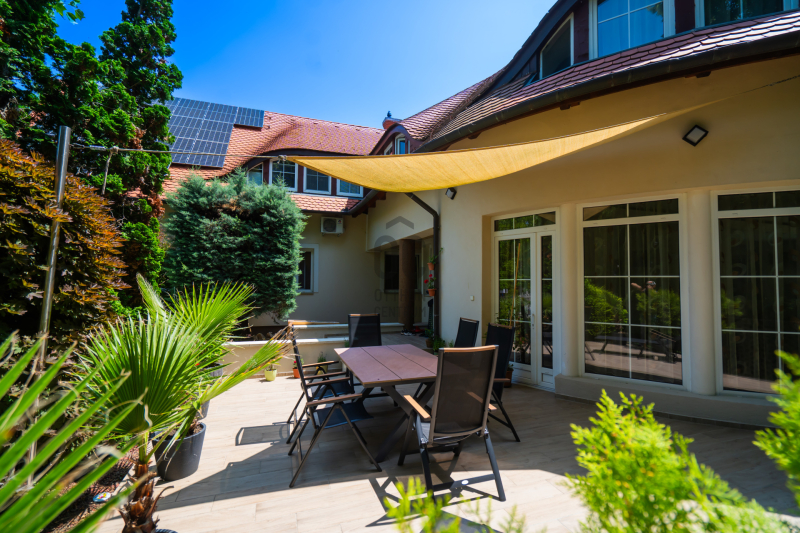 1600 m²-es, parkosított telek, gondozott kerttel, automata öntözőrendszerrel