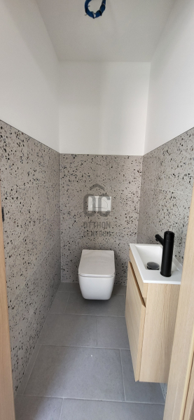 - 96 nm-es. Földszinten 1 háló, konyha-étkező, kertkapcsolatos nappali, fürdő+WC és tároló. Tetőtérben 2 háló, dolgozószoba, és fürdő.