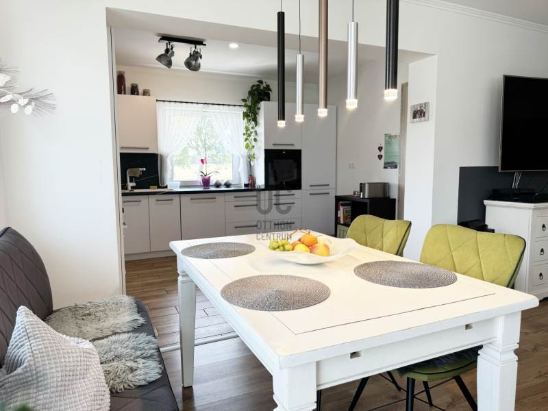 Ez a 150 m²-es földszintes családi ház egy 1188 m²-es, parkosított telken helyezkedik el, és nemcsak a funkcionalitásával, hanem egyedi hangulatával is kitűnik a kínálatból. A ház hátsó udvarából szolid balatoni panoráma nyílik, ami tovább fokozza a természetközeli élményt.