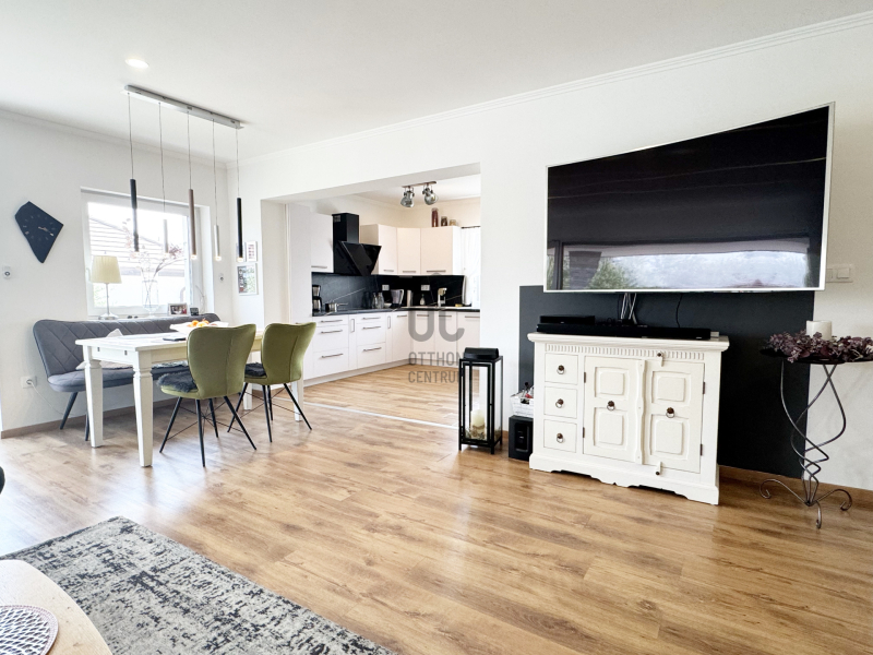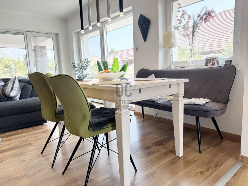 Ez a 150 m²-es földszintes családi ház egy 1188 m²-es, parkosított telken helyezkedik el, és nemcsak a funkcionalitásával, hanem egyedi hangulatával is kitűnik a kínálatból. A ház hátsó udvarából szolid balatoni panoráma nyílik, ami tovább fokozza a természetközeli élményt.