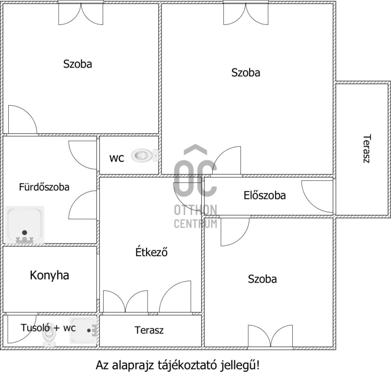 - felső és alsó szinten is három szoba, konyha-étkező, két fürdő és terasz található