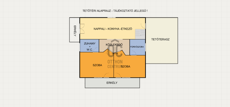 - Tetőtérben : 2 db erkély , nappali - konyha - étkező , 2 db hálószoba , fürdőszoba , W.C.