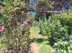 A kert gyönyörűen van karbantartva, parkosítva, örökzöld növényekkel, minden évszakban nyíló virágokkal, számtalan gyümölcsfákkal, konyha kerttel. A kert elülső részén egy fedett kiülős fa pavilon, kerti kút padokkal. A telek hátsó részében lehetőség van egy nagyobb méretű medence felállítására, mely körül teljesen térkövesített, ahol egy kis külön álló fa házikóban lehet tárolni a medencéhez szükséges kellékeket.
