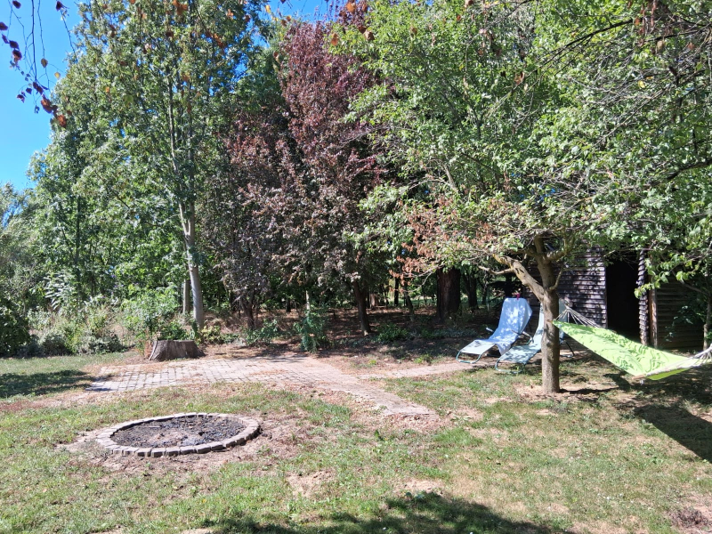 Az egész telek zárt, körbekerített. A telek végén lehetőség van elvonulásokra, meditációra az árnyékot és hangulatot adó fákkal körülvett árnyas és nyugodt erdős részen.