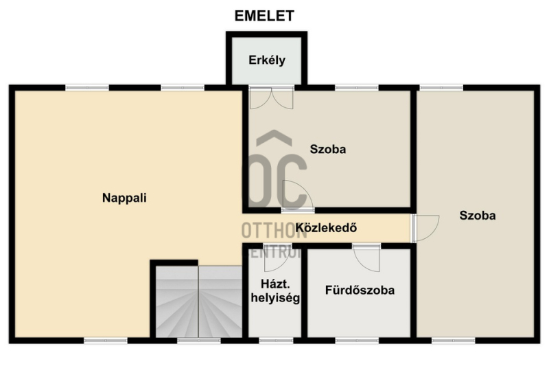 A földszinten tágas nappali-konyha-étkező került kialalkításra. Az emeleten kettő hálószoba és egy fürdőszoba biztosítja az elszeparált életteret, továbbá helyet kapott egy kifejezetten tágas 36 négyzetméter alapterülettel rendelkező nappali. A felső szinten lehetőség van akár három kényelmes méretű hálószoba kialakítására is.