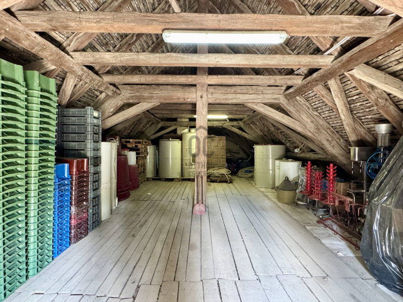 A 2566 m²-es telken 3 épület található (főépület-pinceépület, raktár, WC). A főépület nettó alapterülete ~160m², a padlás ~160m², a pince pedig ~160m². A különálló raktárépület nettó alapterülete ~25m², míg a WC épület alapterülete ~8m².