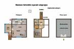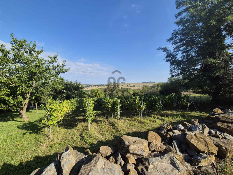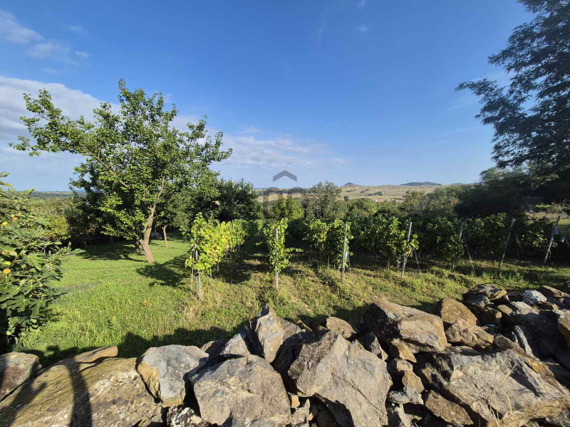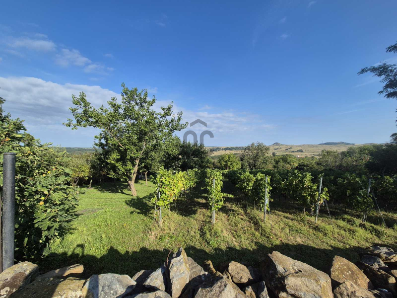 A területen található egy kb. 1980-as években téglából épült ikerház, amely 2 szintes + boros pincés. A ház lakható hasznos összterülete cca. 60 nm. A ház közvetlen környezete egy kb. 1000 nm füvesített, sziklakertes gondozott, füvesített, parkosított terület, teraszos bazalt fallal a kertben, melyen található egy különálló garázs is.