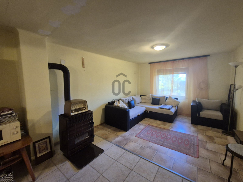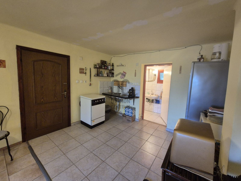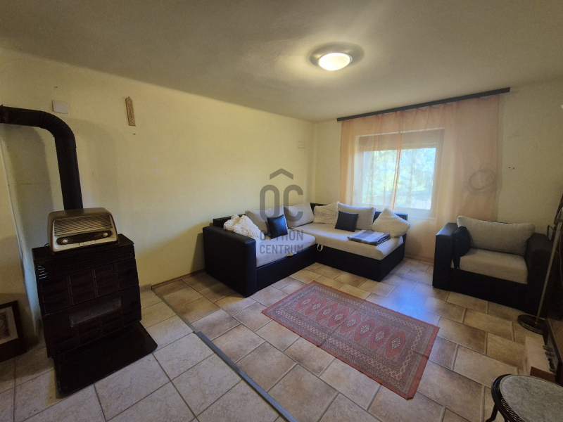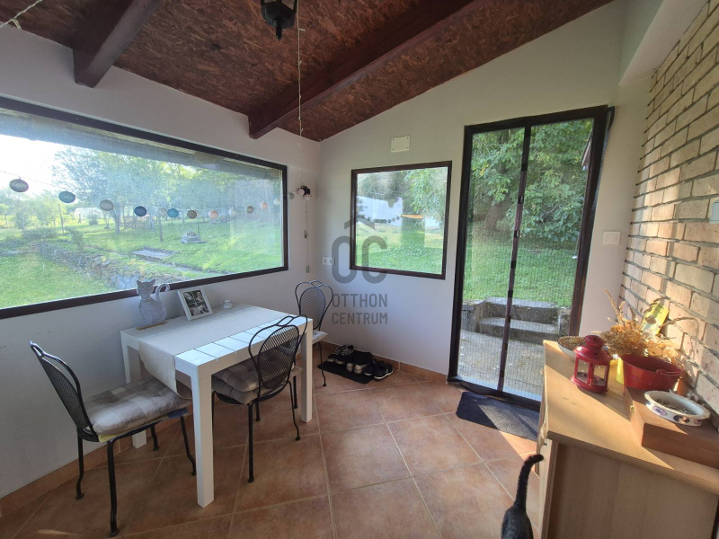 Közmű: villany, ( 25 A), vezetékes víz is bekötve a házba. Az alsó szinten található egy kertkapcsolatos, tágas látványablakos előtér. Szinte belátni az egész kertet. Innen közvetlen a kert hátuljára tudunk kilépni, ahol a garázs van, és itt már a saját erdőbe tudunk felmenni. Ezt az előteret akár télikertnek is használhatjuk. Továbbá a házban van még egy kerámia burkolatos nappali-konyha, egy zuhanyzós fürdőszoba mellékhelyiséggel. A fűtés kandallóval megoldott. ( boylerről megy a melegvíz).