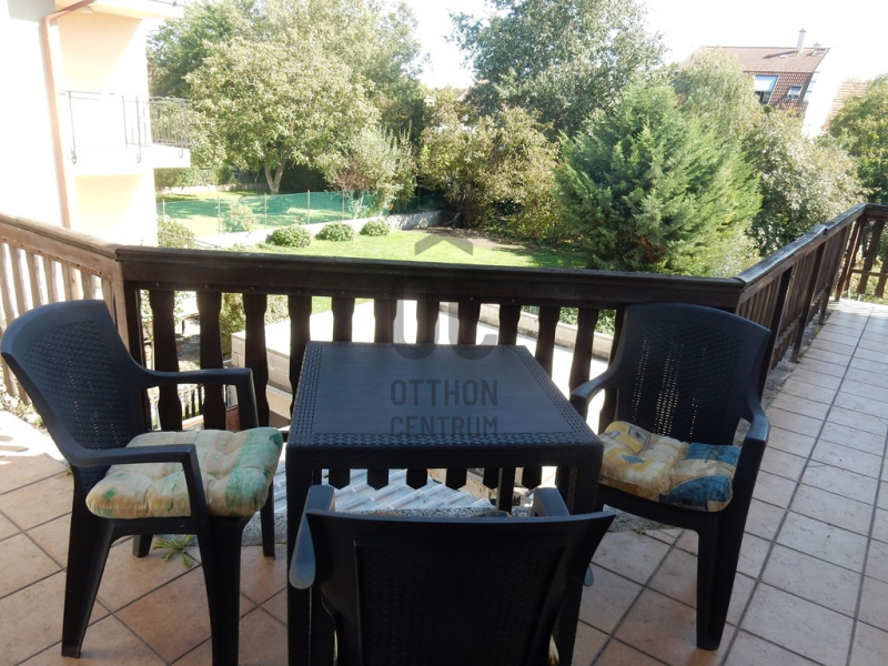 A ház és a garázs mellett a kert felöli egy nagy kb. 60 nm-es teraszon pihenhet és grillezhet nyáron. A szépen gondozott kertben több helyen kerti csap, zuhanyzó és magaságyás is található. A már növésben lévő különleges fák, bokrok kellemes árnyat adnak a nyári melegben. ( Japán fűz, ginkó biloba, eukaliptusz, füge, stb).