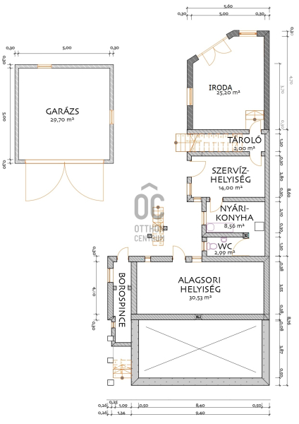 Alagsor: 30.5 nm tároló, kazán helyiség felújított.