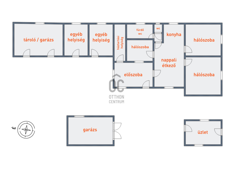 A fő ingatlan egy 1136 nm-es telken helyezkedik el, amely bőséges lehetőséget kínál a kertészkedésre vagy akár a szabadidős tevékenységekre, a fúrt kút pedig segíti a takarékos vízfelhasználást. A meghirdetett ingatlanhoz tartozó házrészben található két, egyenként 12 nm-es szoba, valamint egy 25 nm-es tárolónak, garázsnak vagy akár állattartásra is használható épületrész. Mindezeken felül a telken van külön épületként egy 20 nm-es, aknás garázs, valamint egy 14 nm-es, szintén különálló egységként, üzlethelyiségként használható épület, saját pincével.
