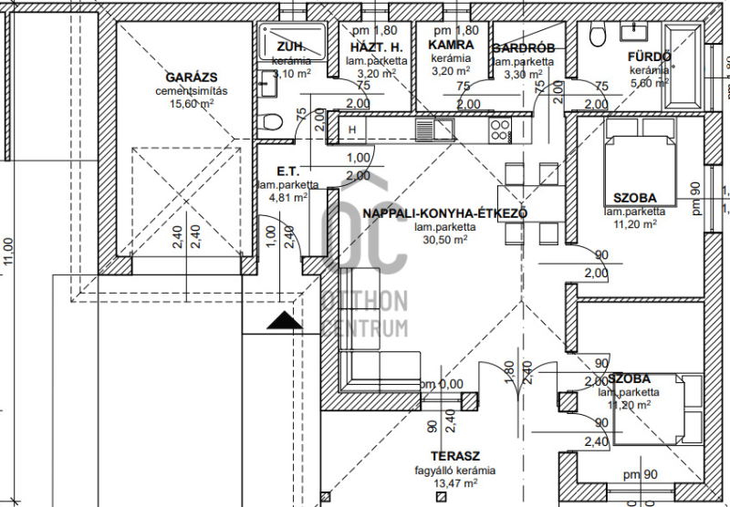 -Nappali+2 hálószoba, 2 fürdőszoba és garázs, vagy