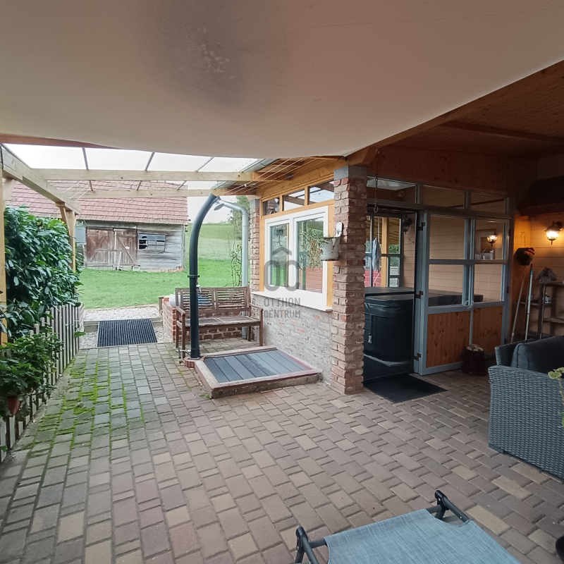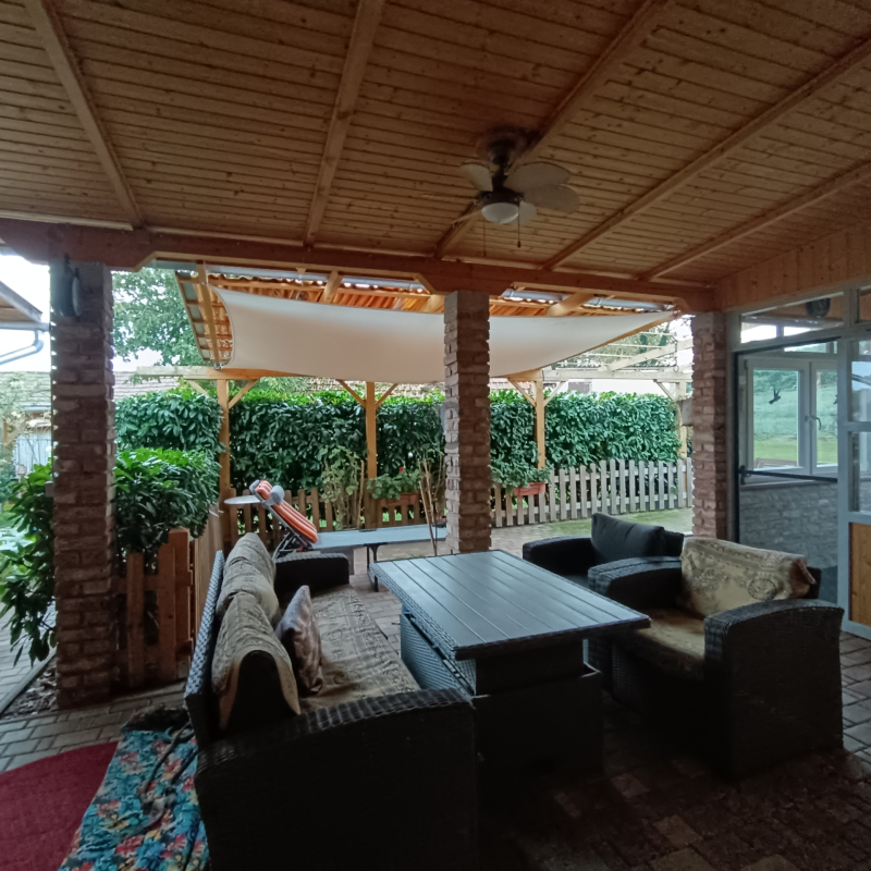 - az étkezőből érkezünk a hatalmas fedett teraszra, amely biztosítja az ellazulást és a közös családi, baráti összejövetelek kellemes időtöltését