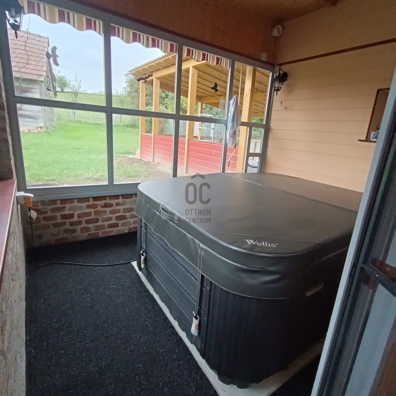 - a fedett terasz folytatásában pezsgőfürdőzhetünk is, ahonnan a kert és az udvar teljes panorámájában gyönyörködhetünk