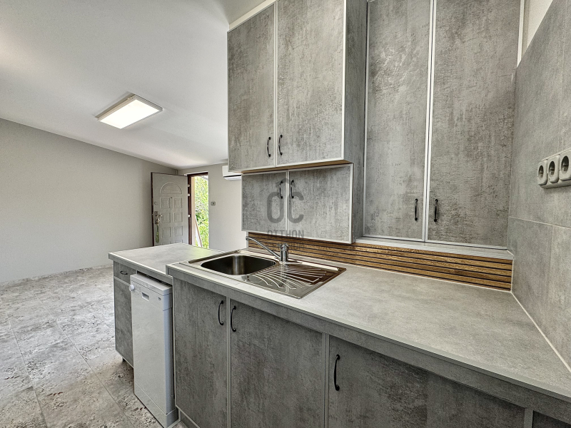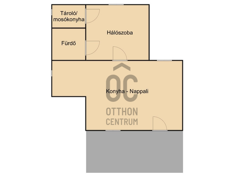 - Konyha-nappali + hálószoba + fürdő + mosókonyha elrendezésű