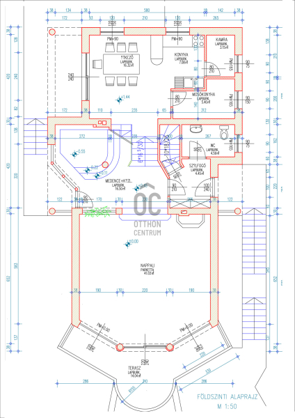 - nappali + 4 szoba, 3 fürdőszoba,
