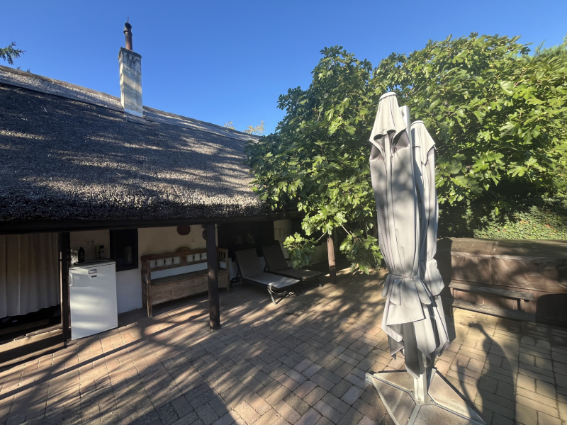 A nádfedeles bazaltkő épület egy 1151 négyzetméteres belterületi telken helyezkedik el, összközműves, külső - és belső állapotából adódóan egyből használható.