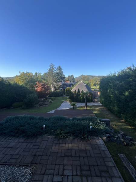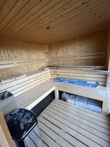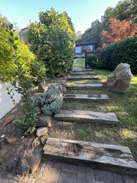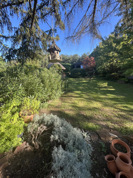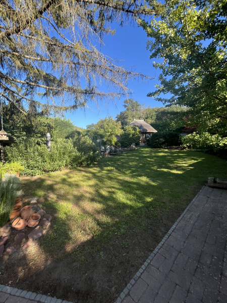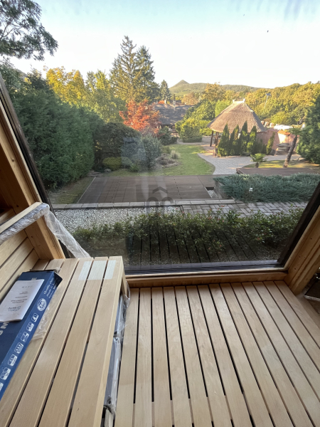 A kert hátsó részében található egy hangulatos kerti tó, amit egy vörös levelű japán juharfa tesz teljessé. A telek végében egy 40 négyzetméteres alapterülettel rendelkező szaunaház került kialakításra, benne 8 személyes finn szauna, 9 kw-os kályhával, a falon egy parajdi sóképpel, zuhannyal, külső pihenővel, ahonnan a kilátás a Badacsonyra néz.