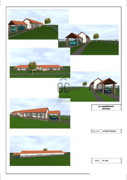Veresegyházon Viczián városrészben csendes, családi házas környezetben kínáljuk megvásárlásra egy újépítésű, FÖLDSZINTES kialakítású ikerház mindkét lakását. A két utcára nyíló telek adottsága miatt a két ikerfél egymásnak háttal épül, így mindkét tulajdonos külön utcáról járhat be a saját ingatlanába, nincs egymáson átjárás, a telek középen el lesz választva. A lakóépület belső elosztása kiváló, a mai igényeknek megfelelő: kényelmes méretű, 3 külön nyíló hálószoba, egyikhez privát fürdőszoba tartozik, tágas, világos, teraszon át kertkapcsolatos nappali-konyha-étkező, kamra, nagy előszoba, háztartási helyiség, külön mellékhelyiség és még egy fürdőszoba. Fedett, tornácos jellegű terasz, továbbá egy nyitott, térkövezett terasz. Egy autóval garázsban parkolhatunk, további autóbeállási lehetőség adott a telken. Az ingatlan három féle készültségi fokban vásárolható meg: