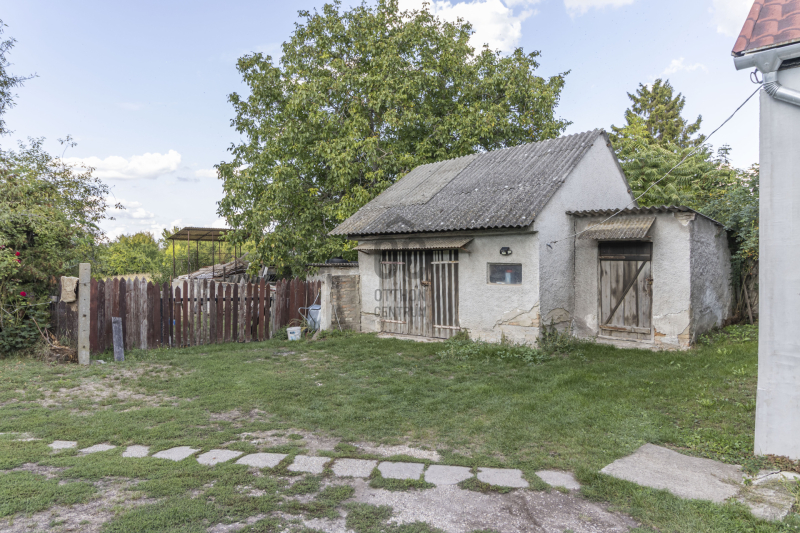 A lakáshoz tartozik az előkertben megtalálható fúrt kút, illetve a garázs, tároló és a lekerített kert is.