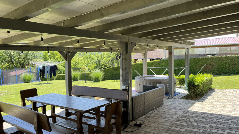 A ház igazi gyöngyszeme a közel 50 m 2 – es fedett terasz, mely kellemes helyet biztosíthat a nagy családi, vagy baráti összejöveteleknek.