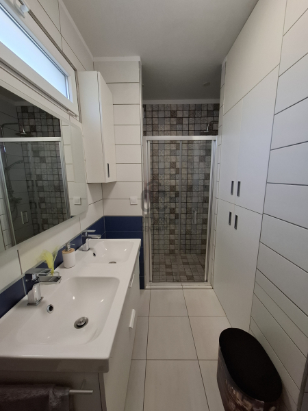 Alumínium redőnnyel, szúnyoghálóval ellátott szigetelt műanyag ablakok, valamint a konyhában új modern bútorok, a fürdőkben új szaniterek falburkolatok kerültek beépítésre.