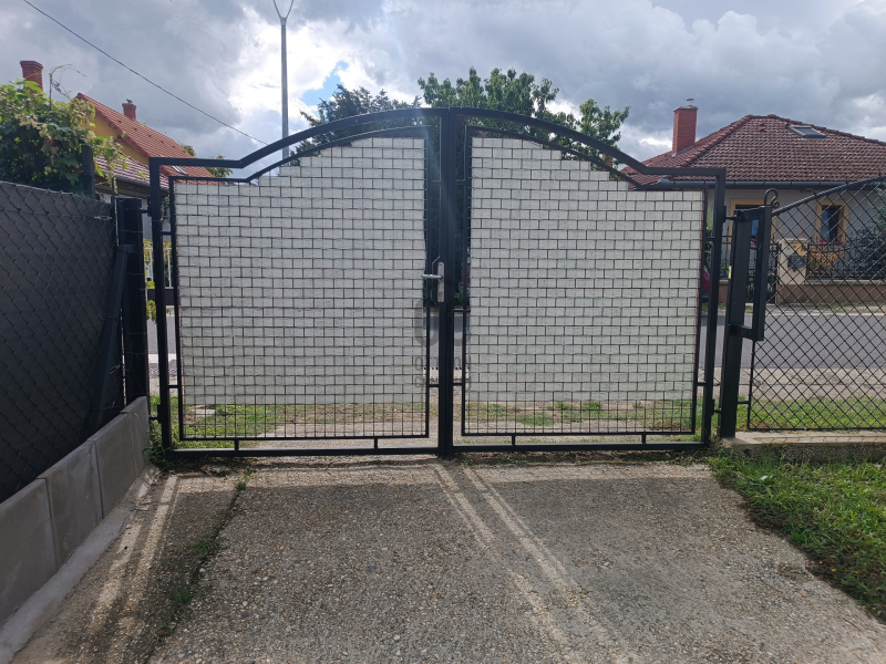 - teljesen körbe kerített, új kerítés árnyékolóval
