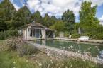 -Épített,fűthető, fedhető, üvegmozaikkal burkolt medence, hozzá napkollektor, fürdőház