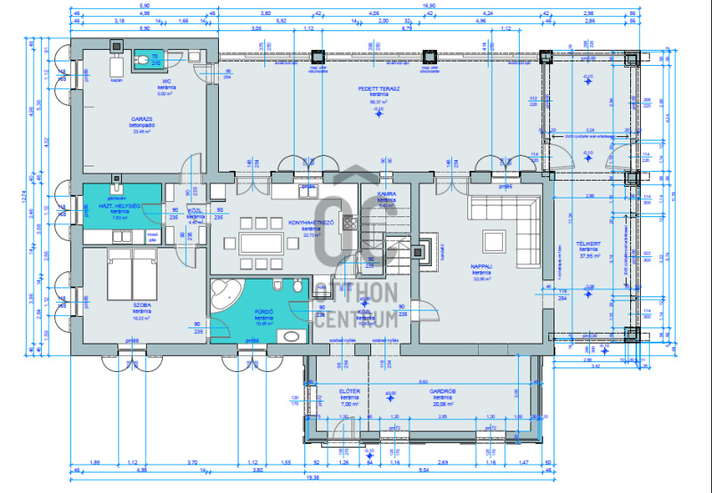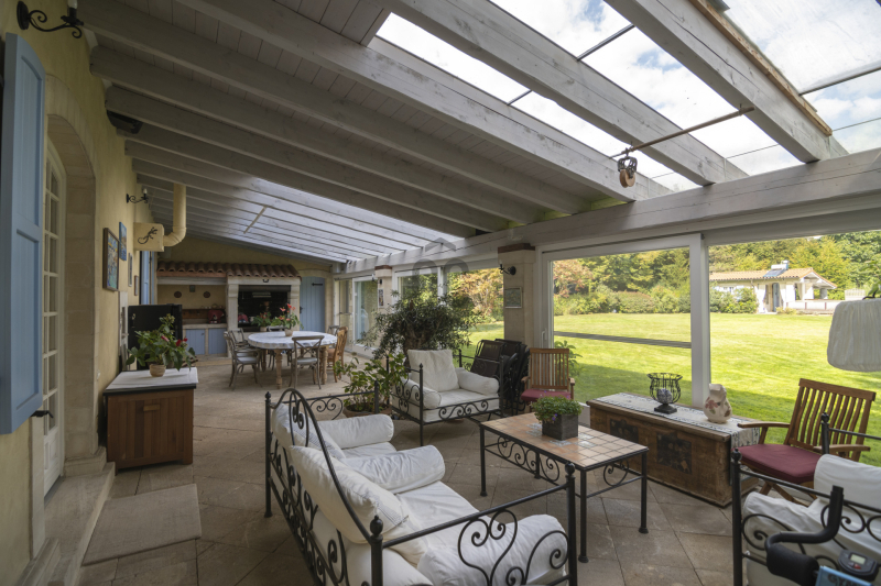 -Tágas, fedett 60 m²-es terasz kültéri konyhával és grillezővel