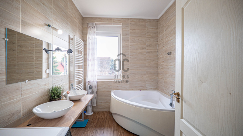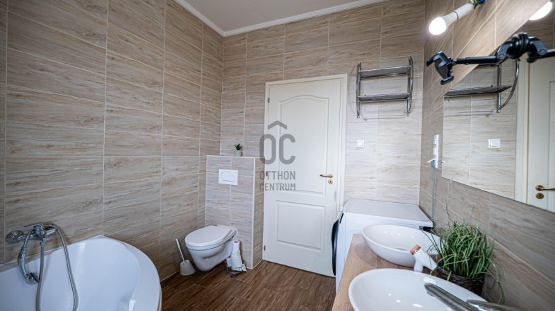 A szülői hálószobához külön tartozik egy gardrób helyiség és egy zuhanyzó-WC helyiség.