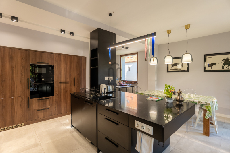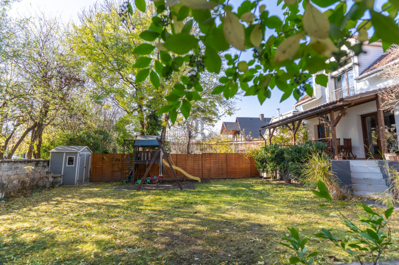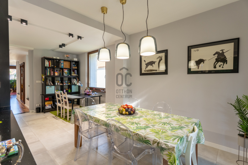 Eladó Pest vármegyében, Budaörs központi, mégis csendes és zöld részén egy nappali + 5 szobás, modernizált, teljes körűen felújított, élhető, praktikus terekkel és intim kerttel rendelkező családi ház.