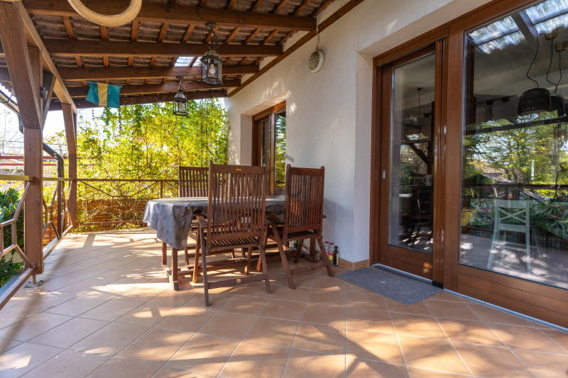 - A konyhához és étkezőhöz kapcsolódó méretes fedett terasz tavasztól őszig egy plusz családi életteret jelent.