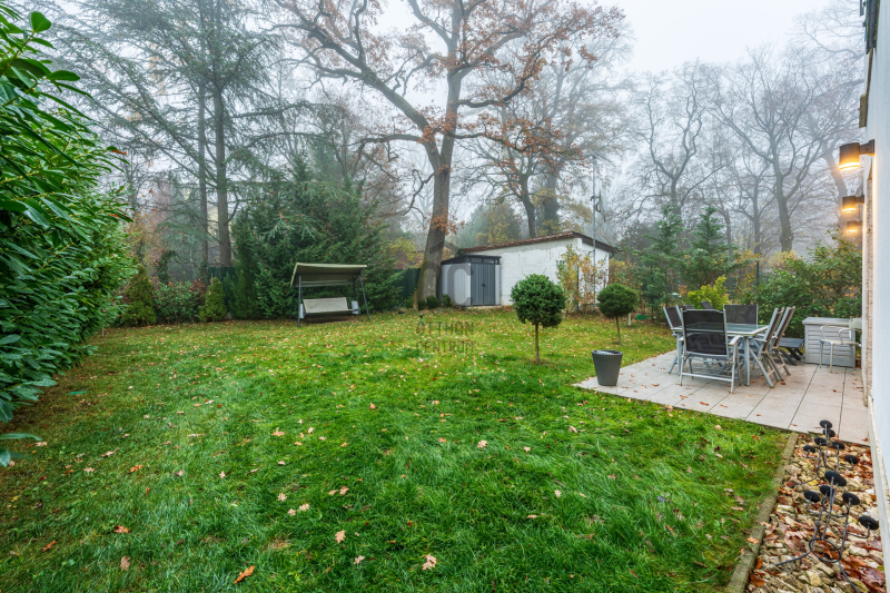 A gondozott, nagy ősfás kertben kerti tároló kis ház is helyet kapott.