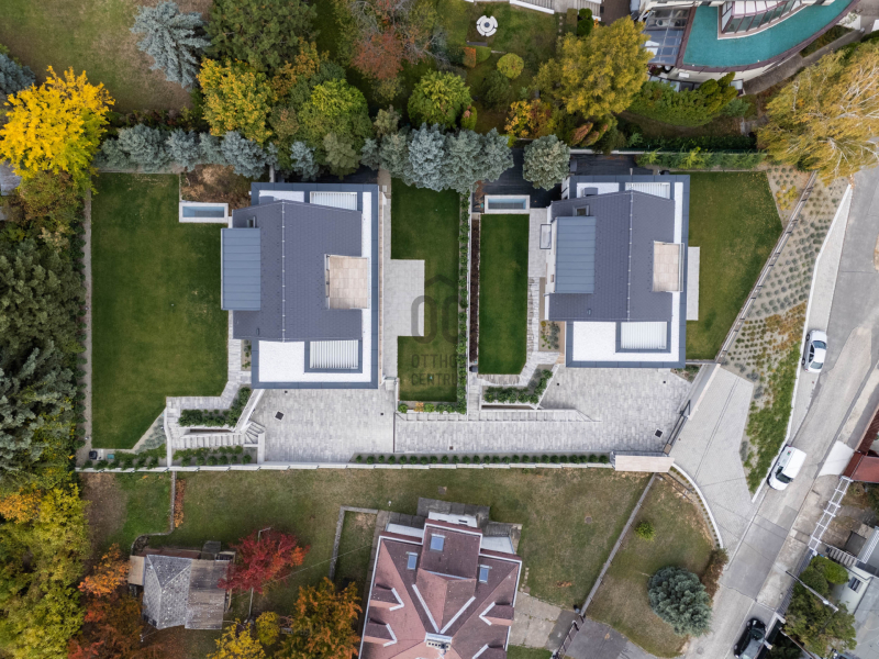 A kertek automata öntözőrendszerrel és robotfűnyíróval felszereltek, a teraszok télen-nyáron használhatók, a belső terek pedig minőségi beépített bútorokkal és gépesített konyhával készültek.