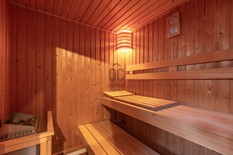 saját szauna és kandalló