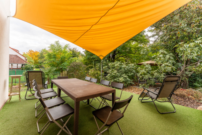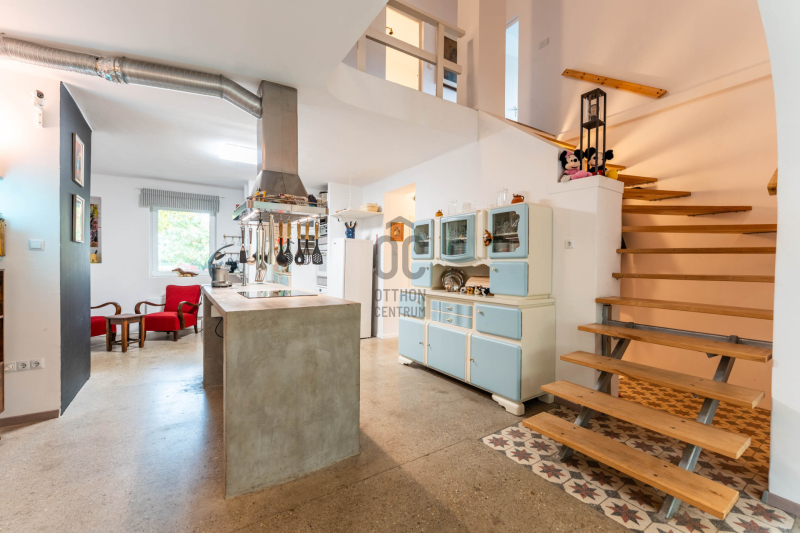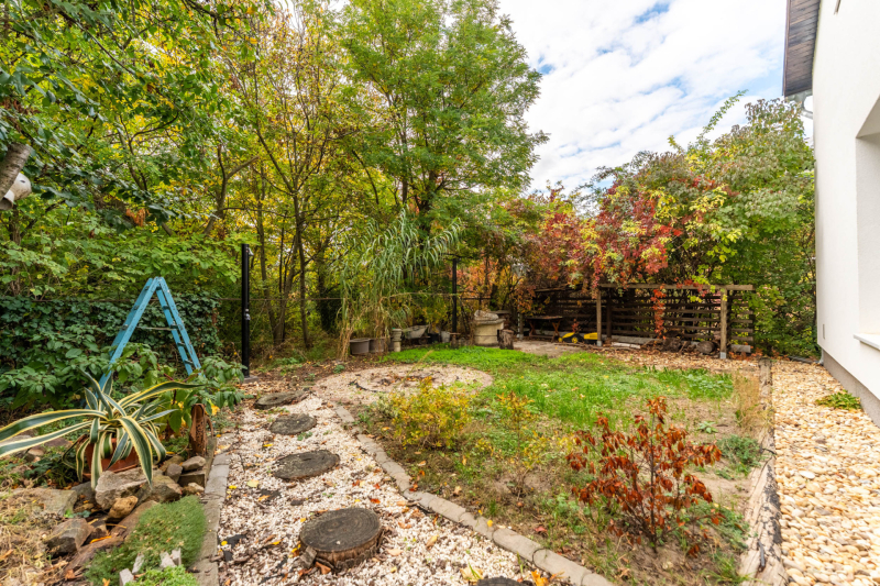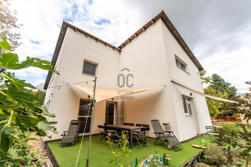 Központi helyen, csendes és zöld környezetben található 7 szobás, 3 fürdőszobás egyedi tervezésű ház, kitűnő lokációban, jó közlekedéssel, mindenhez közel. Tágas és világos nappali, egyedi lépcső és privát szférát nyújtó szobák. Mindehhez egy óriási terasz és egy pihenőkert is tartozik, ahol árnyas ücsörgők és napos foltok váltakoznak, a pihenéshez az alaphangot pedig a pálmafa, a fügefa és kerti grillező adja meg.