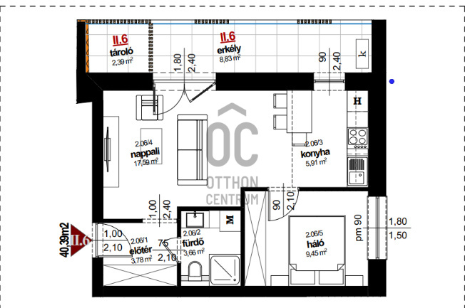 Erkély mérete: 11 m2